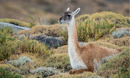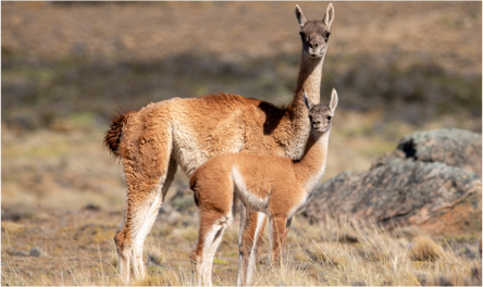Los Guanacos son mamíferos, parientes de las llamas pertenecientes al orden de los camélidos, llevan con humildad el título de ser los vertebrados terrestres mas grandes de la Patagonia. Esta hermosa especie animal, fue antes de la llegada del hombre blanco, un aliado fundamental para la supervivencia de los indígenas que habitaban la Patagonia, proveyendo la carne como alimento y la piel como abrigo.