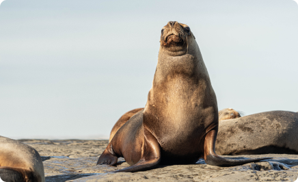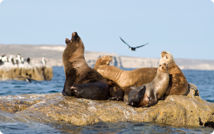 En Punta Pirámides a sólo 5 km de Puerto Pirámides se encuentra otra colonia de lobos marinos.